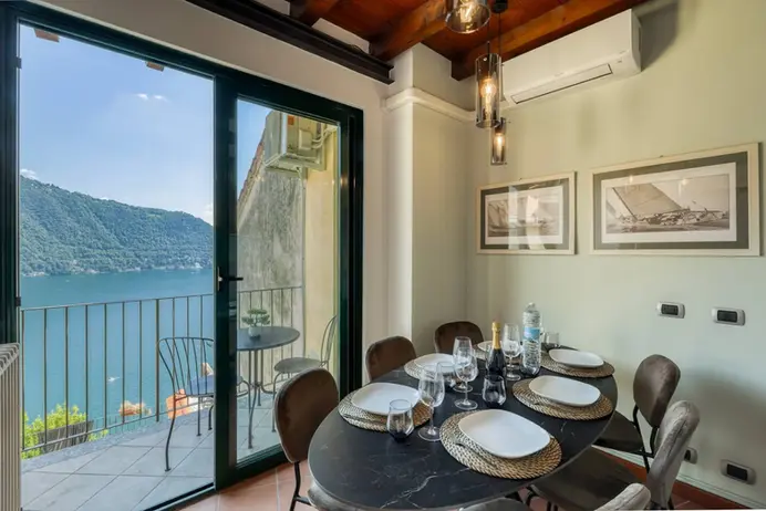 Benvenuti in questo appartamento romantico e tranquillo che offre una vista mozzafiato sulle scintillanti acque del Lago di Como, creando un’atmosfera di serenità e relax.
